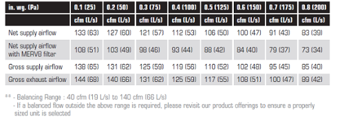 Defrost Sequence :The unit incorporates a unique and quiet internal recirculation defrost that does not depressurize the home during the defrost cycle. A preset defrost sequence is activated when the outdoor temperature falls below 23° F (-5° C) and automatically adjusts itself based on operating conditions. The fan speed is also adjusted automatically to provide a smooth and quiet transition between Ventilation & Defrost mode.